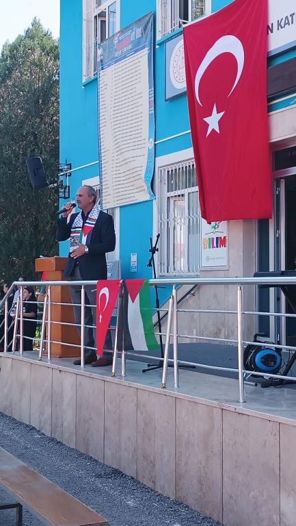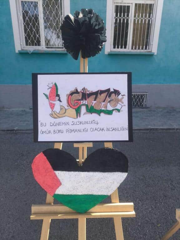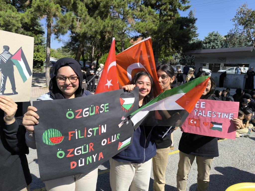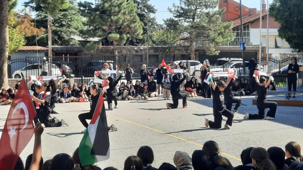 Türkçe öğretmeni Asiye Edirneligil' in sunumuyla başlayan programda tüm sehitler anısına saygı duruşunda bulunuldu. İstiklal Marşı'nın okunmasının akabinde Kur'an-ı Kerim tilaveti gerçekleştirildi. Gazze ve tüm İslam coğrafyası için dualar edildi. Okul Müdürü Gürkan Çetin yaptığı açılış konuşmasında; Gazze'de insanlık suçunun işlendiğini, kadınların ve çocukların ölüme terkedildiğini, müslüman âleminin ve insanlık vicdanının derhal harekete geçmesi gerektiğini, dünyanın bu vahşete artık "DUR!" demesi gerektiğini belirtti. Öğrencilerin okuduğu Mehmet Akif İnan ve Cengiz Numanoğlu 'na ait "Mescid-i Aksa" şiirleri duygu seli oluşturdu. Müzik öğretmeni Burcu Özdemir öncülüğünde hazırlanan koro Filistin ile ilgili eserler seslendirdi. Okul öğrencileri çaldıkları piyano eşliğinde kendi Gazze bestelerini sundular. Yine müzik öğretmeni tarafından hazırlanan "Dabke Dansı" büyük ilgi gördü. Öğrenciler sık sık " Özgür Gazze Özgür Filistin" sloganı atarken Sumud Filosuna destek için tüm hafta boyunca taktıkları mavi bilekliklerini gösterdiler. Teknoloji ve Tasarım öğretmenleri Hülya Aksoy ve Reyhan Başpınar liderliğinde hazırlanan afiş ve sloganlar programa renk kattı. Programın finalinde ise Görsel Sanatlar Öğretmeni Emine Atasever ve öğrencileri tarafından dönemin başından bu yana hazırlanan "Filistin" temalı resim sergisi yer aldı. Programin sonunda Gazze yararına açılan satış standından elde edilen 25.360 TL'nin Gazze'ye gönderildiği ifade edildi.