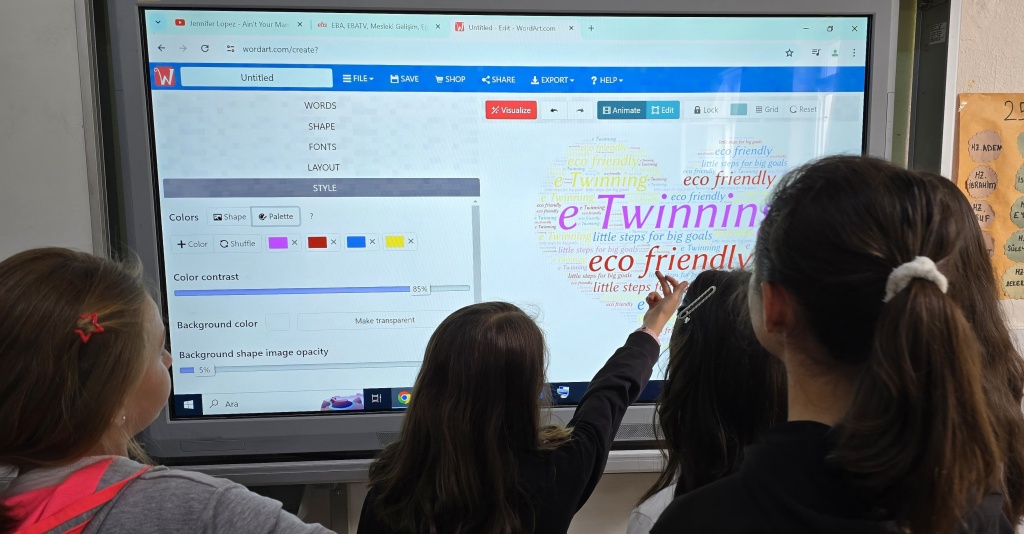 Our students did brainstorming activity about the name of our project.They wrote words that came to their mind about the project to the board.Then they used Web