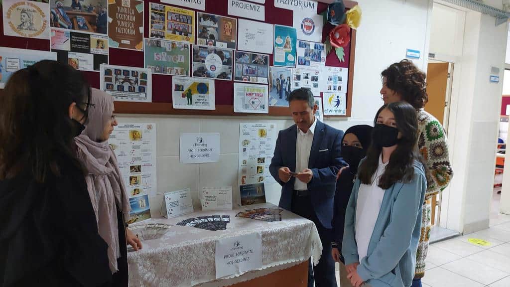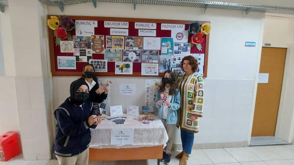 Öğrencilerimiz sorumlu öğretmenleri Emel Can ile birlikte sene boyunca hazırladıkları çalışmaları sergilediler. Öğrencilerimizce ortak okullarla iş birliği halinde tasarlanan"Yunus Emre" temalı kitap ayraçları, masa ve duvar takvimleri büyük ilgi gördü.